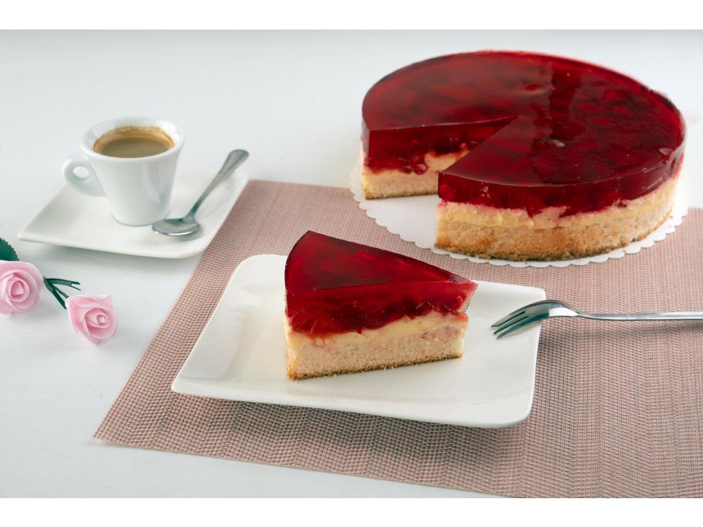 A co by to bylo za jahodový dort bez šťavnatých jahod? Tyto zralé jahody jsou pečlivě vybrané a umístěné na vrcholu dortu, aby potěšily vaše smysly svou jasnou barvou a sladkou chutí. A jako třešnička na dortu je celý dezert zalitý lesklou želatinou, která mu dodává elegantní vzhled a chrání čerstvé ovoce.