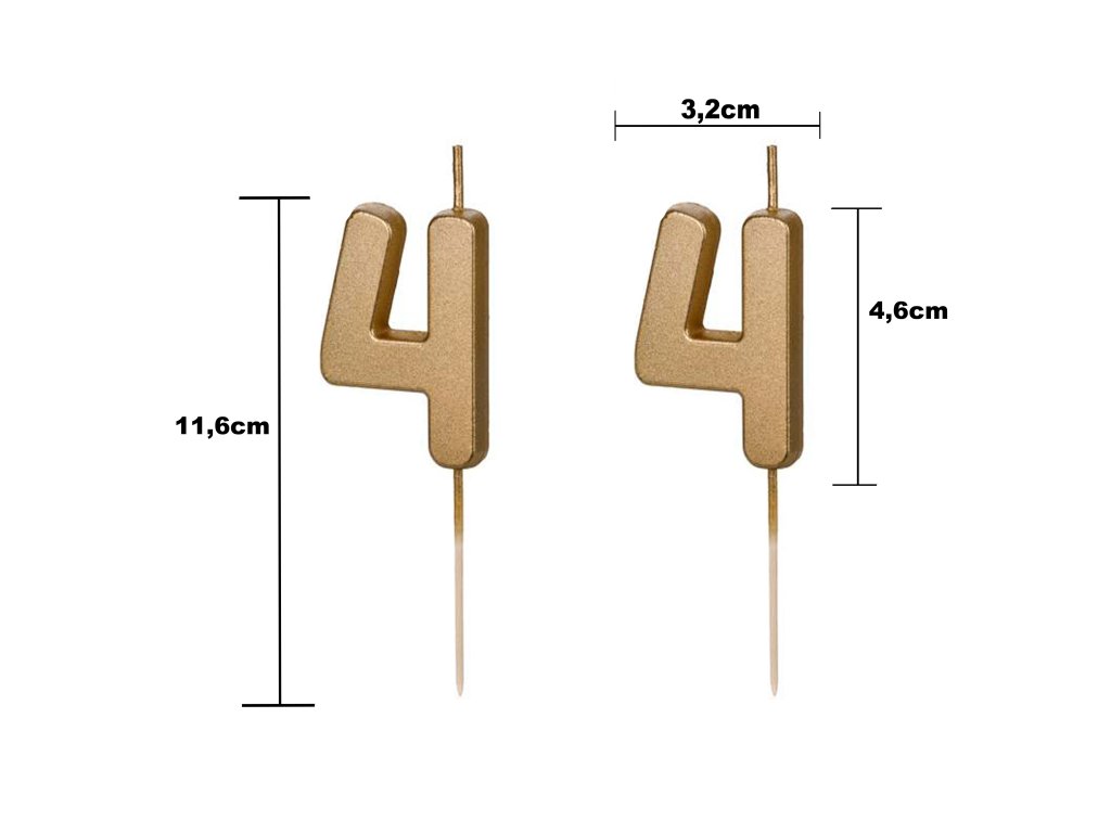 Elegance a styl ve zlaté barvě: Naše zlatá svíčka je navržena tak, aby okamžitě přitáhla pozornost všech přítomných. Jasná, lesklá zlatá barva dodá vašemu dortu nádech luxusu a rafinovanosti. Je to dokonalý způsob, jak vyjádřit významný moment, ať už slavíte 4. narozeniny, 4. výročí, nebo jakoukoli jinou výjimečnou událost.