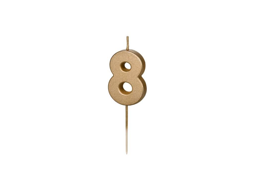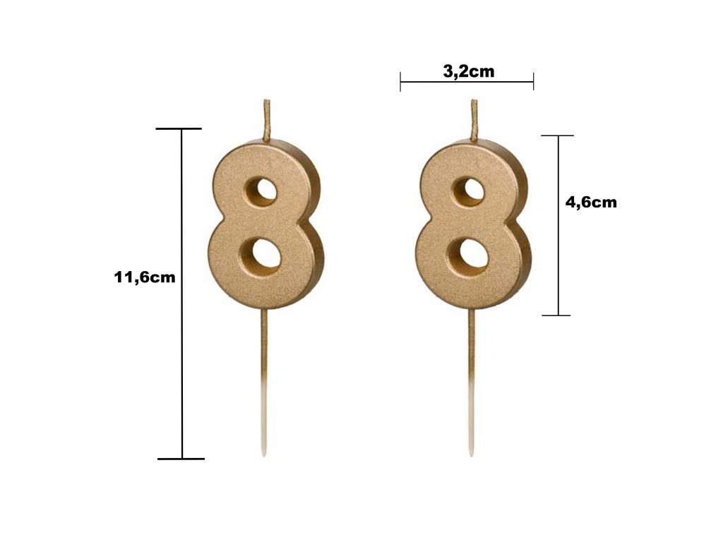 Připravte se oslavit ty nejdůležitější okamžiky svého života s naší elegantní zlatou dortovou svíčkou ve tvaru číslice 8. Ať už plánujete oslavu narozenin, výročí nebo jiné významné události, tato svíčka dodá vaší oslavě jiskru a sofistikovanost, kterou si zasloužíte.
