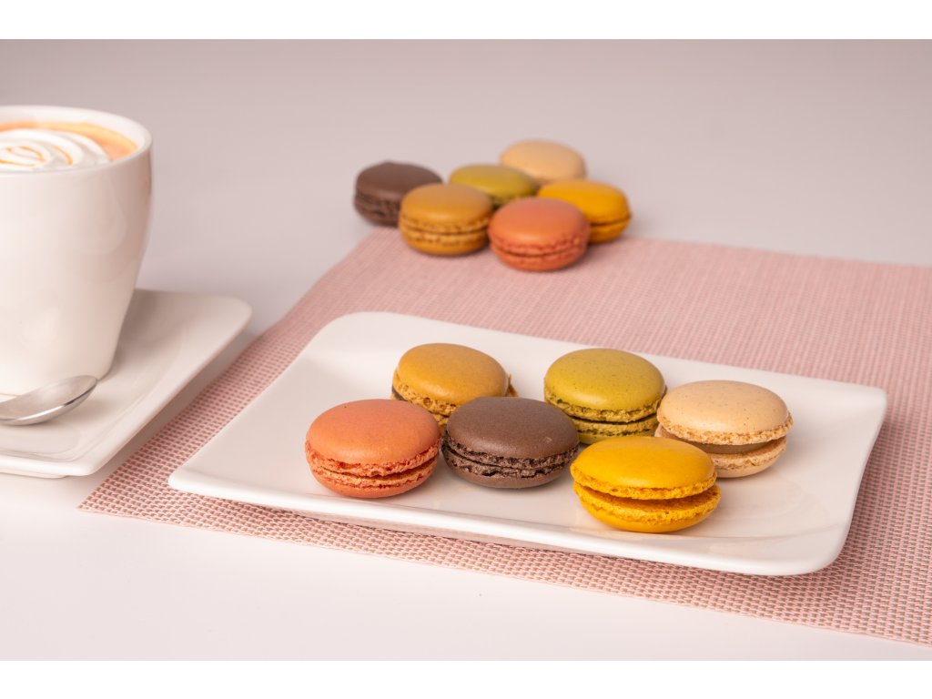 - Hořká čokoláda (6 %): Hluboká a intenzivní chuť hořké čokolády potěší všechny milovníky čokoládových pochoutek a dodá makronkám bohatou texturu.