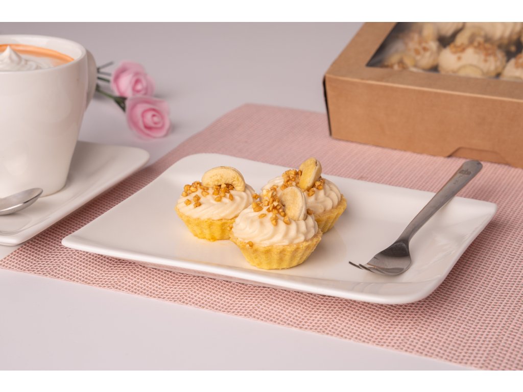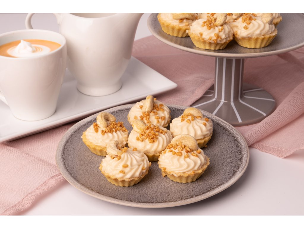 Chuť, kterou prostě nezapomenete. Kombinace křehkého těsta a krémové náplně s kešu je návyková. Jeden košíček nestačí, ale to je v pohodě – máte jich rovnou 16.